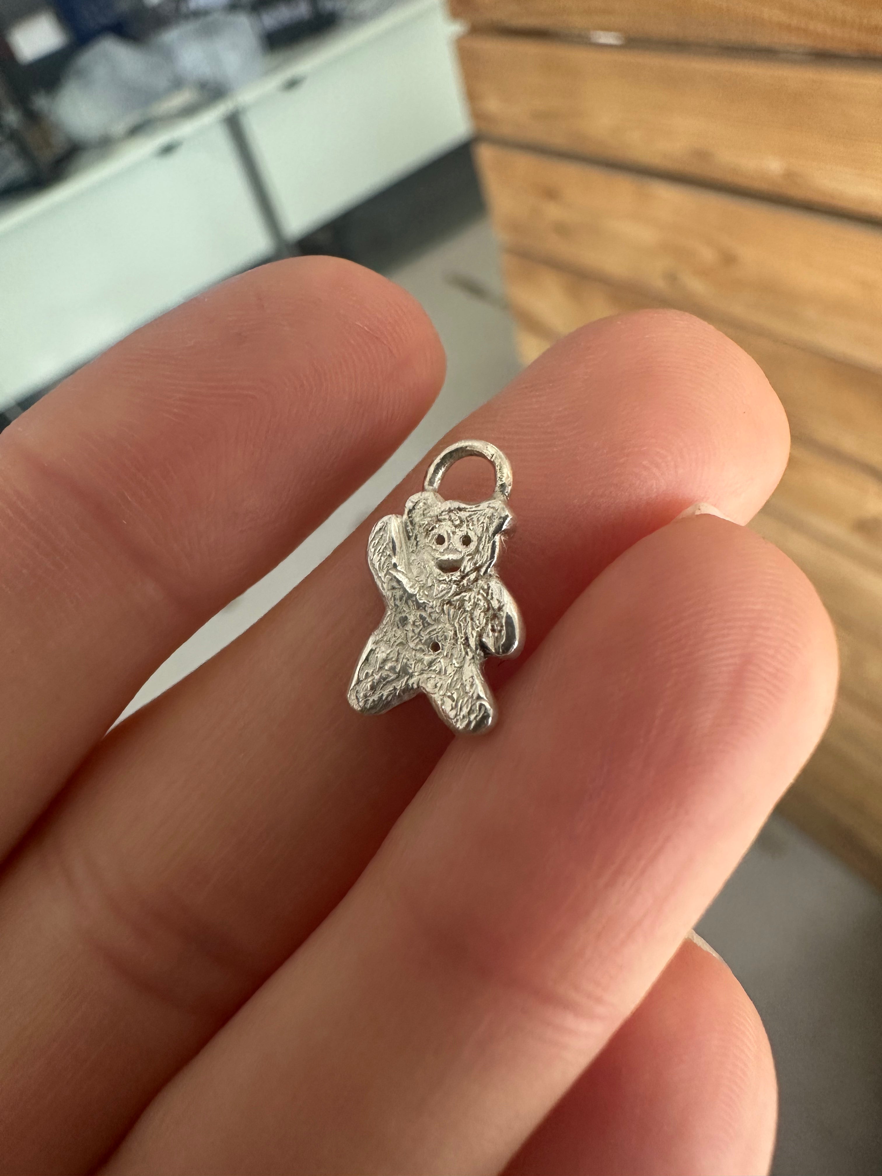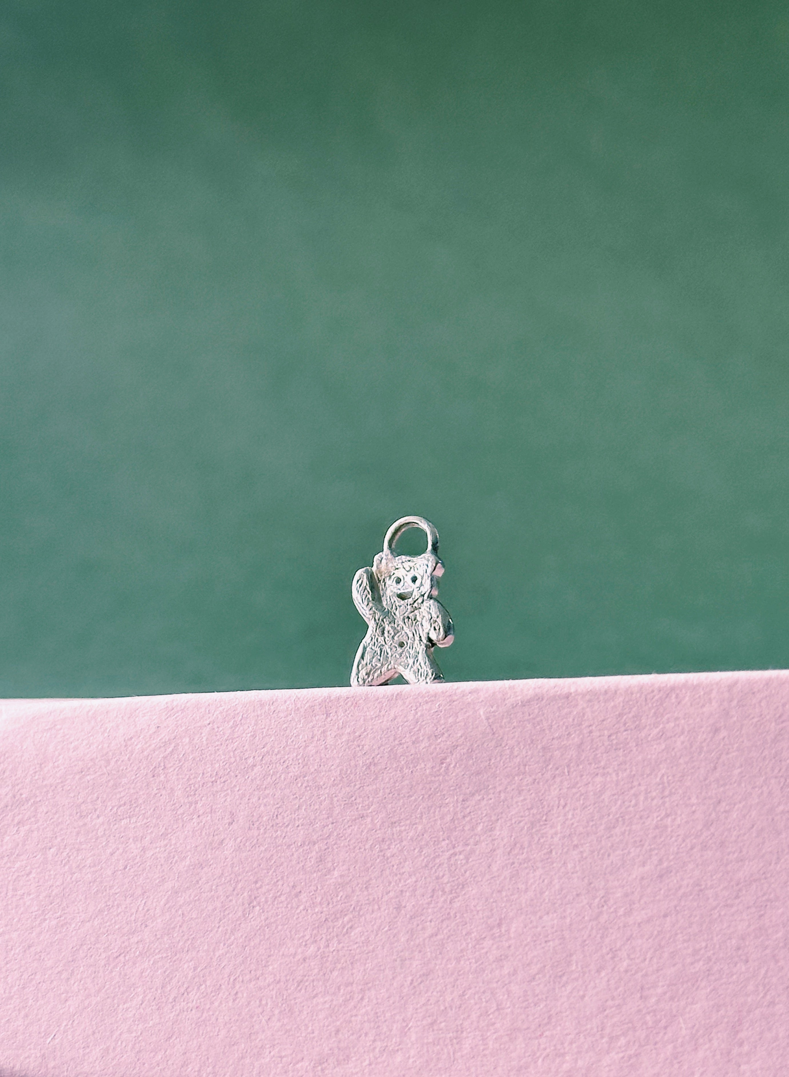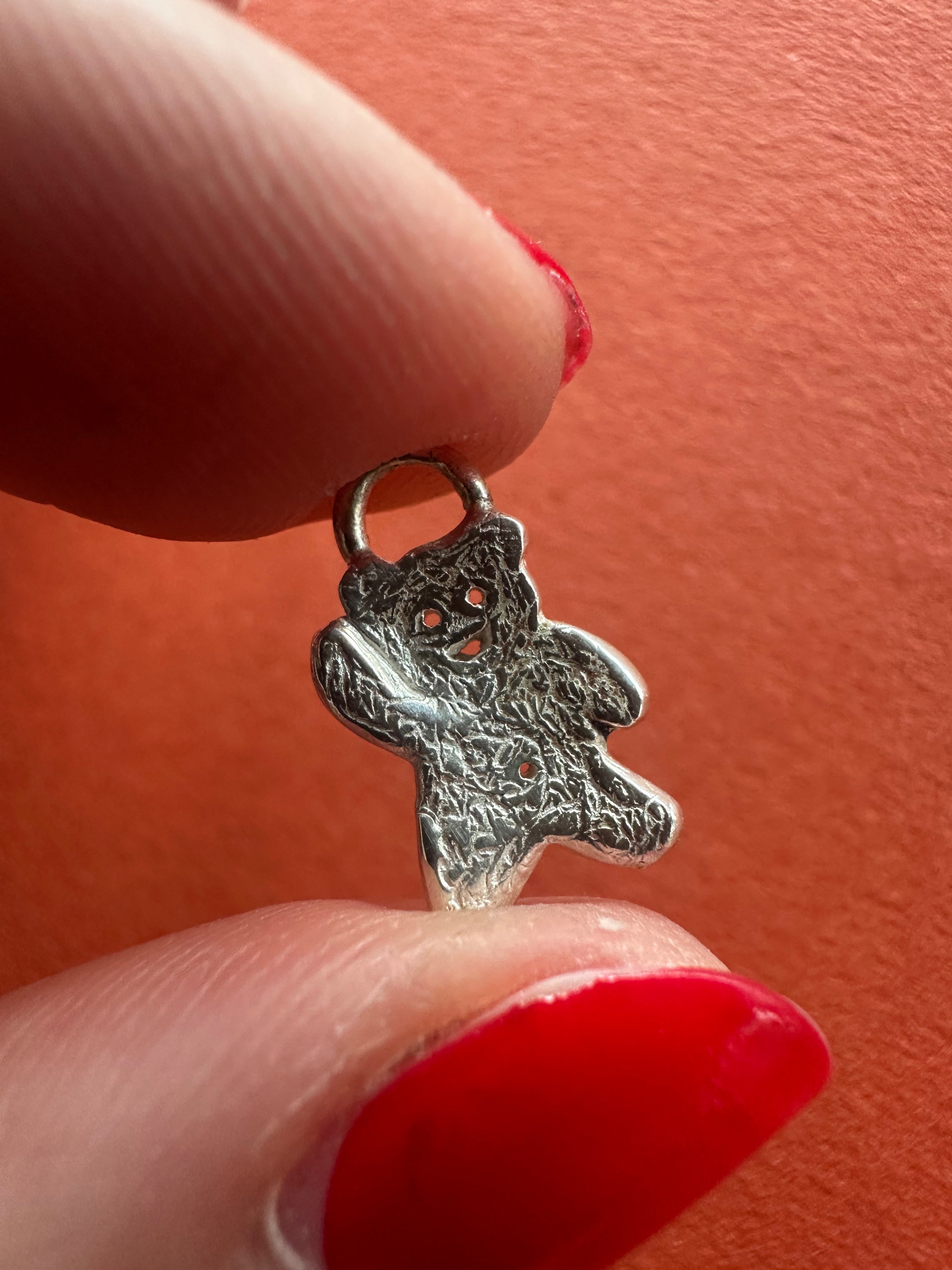 Tiny bear charm made with 100% recycled 925 sterling silver, paired with a recycled sterling silver chain.