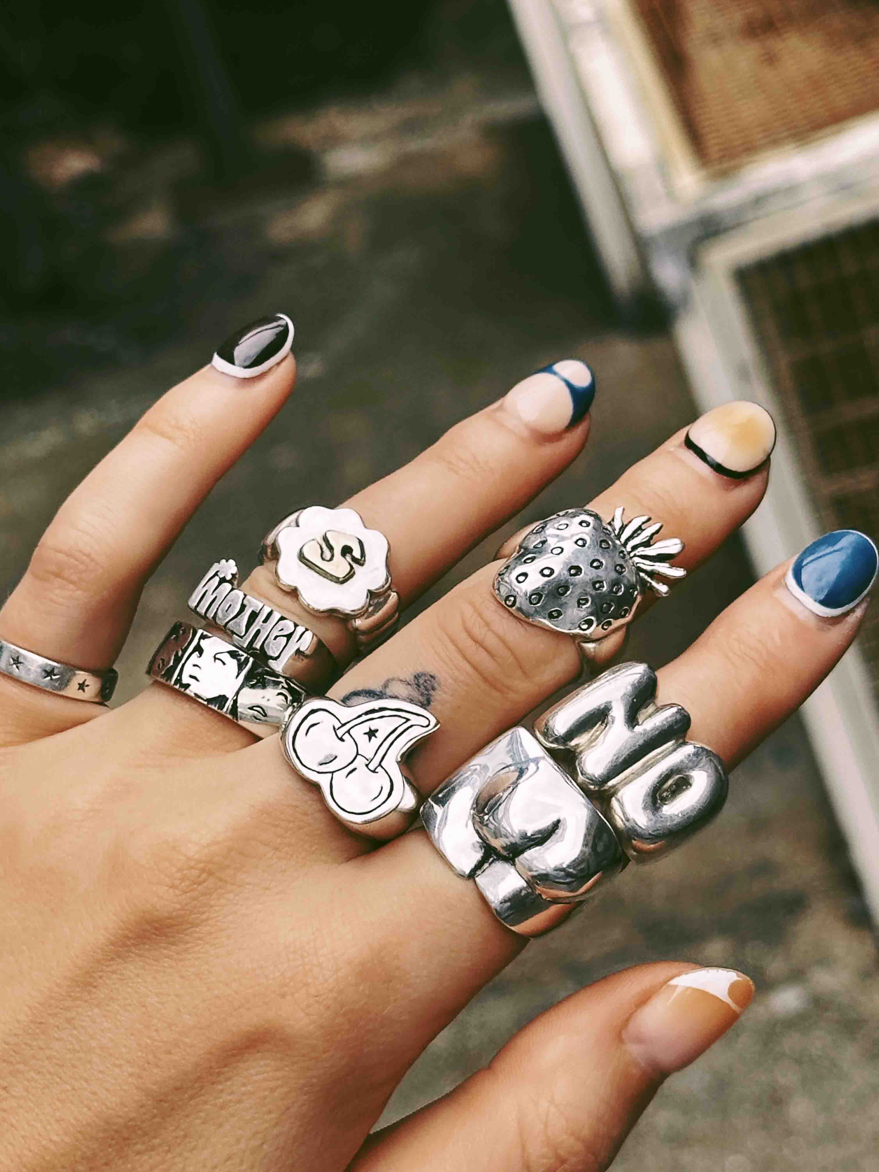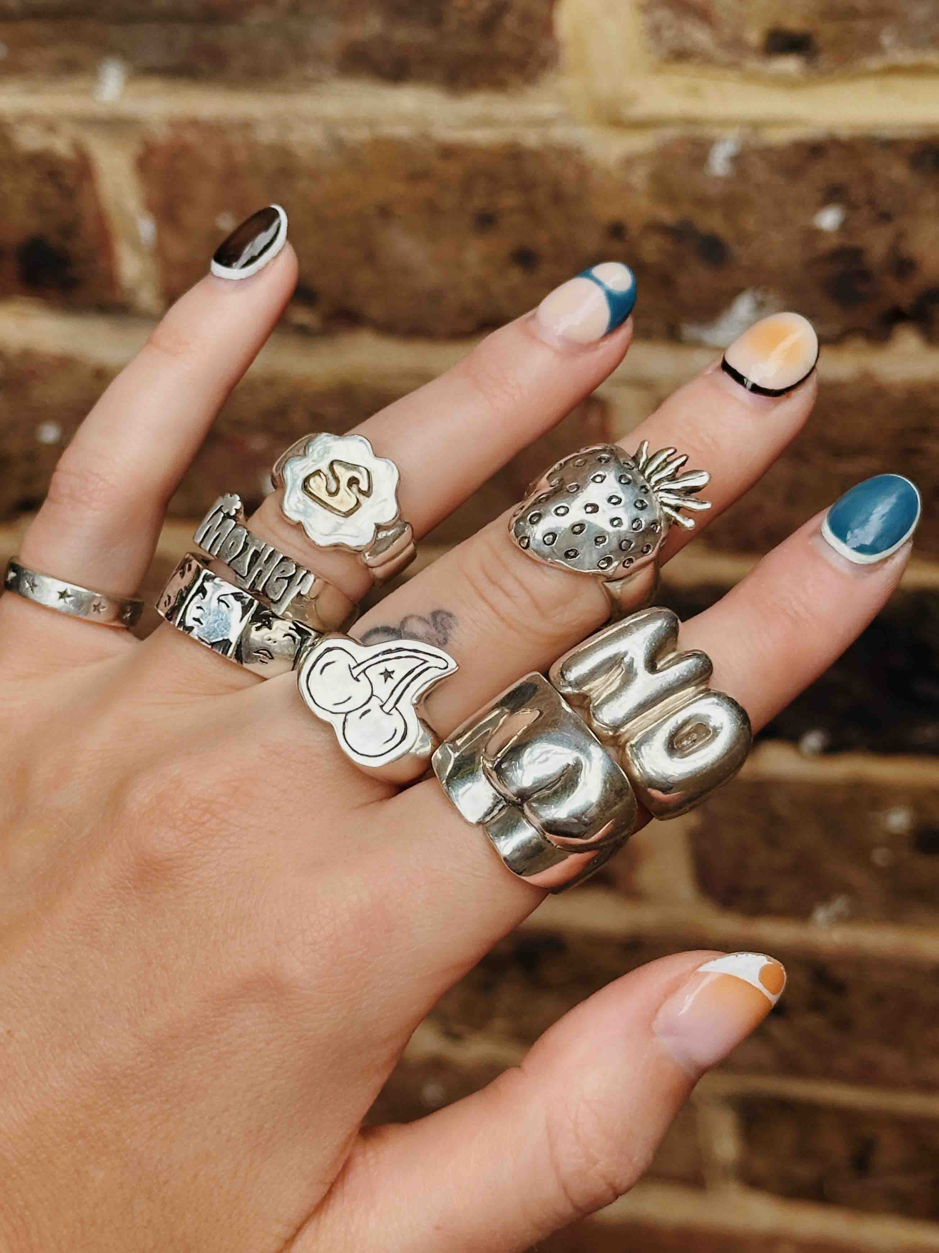 If you usually wear thinner rings or have checked with a ring sizer & know your size, we'd recommend sizing up (eg. go up from a size 6 to a 6.5) as the band on this piece is much thicker. If you wear thicker rings & know your size, please order as normal!