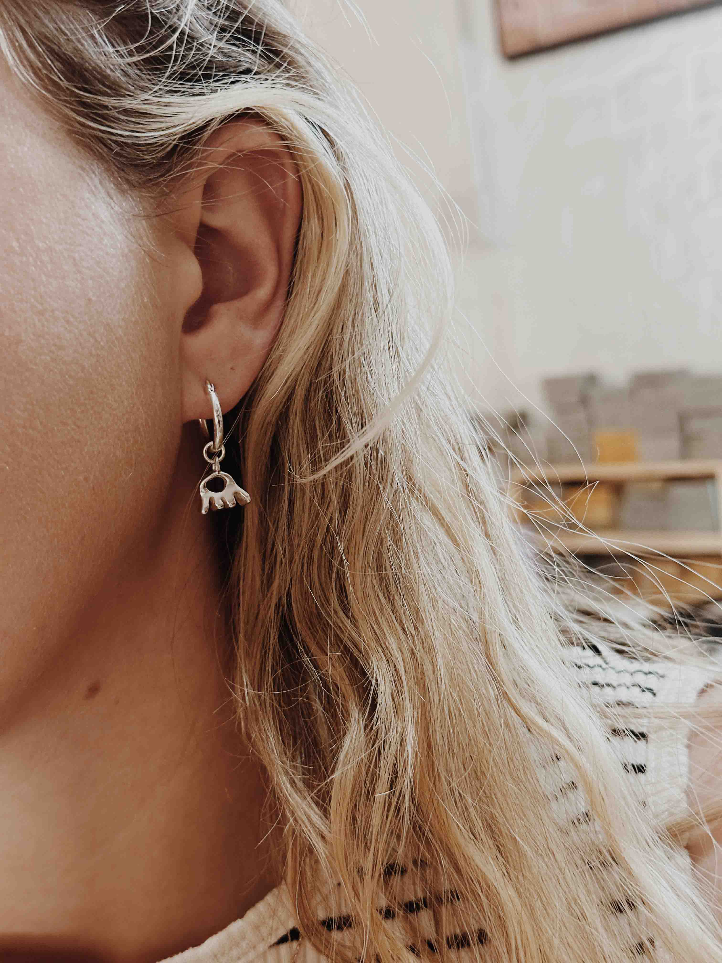 Cast using 100% recycled 925 sterling silver, paired with sterling silver hinged hoops.