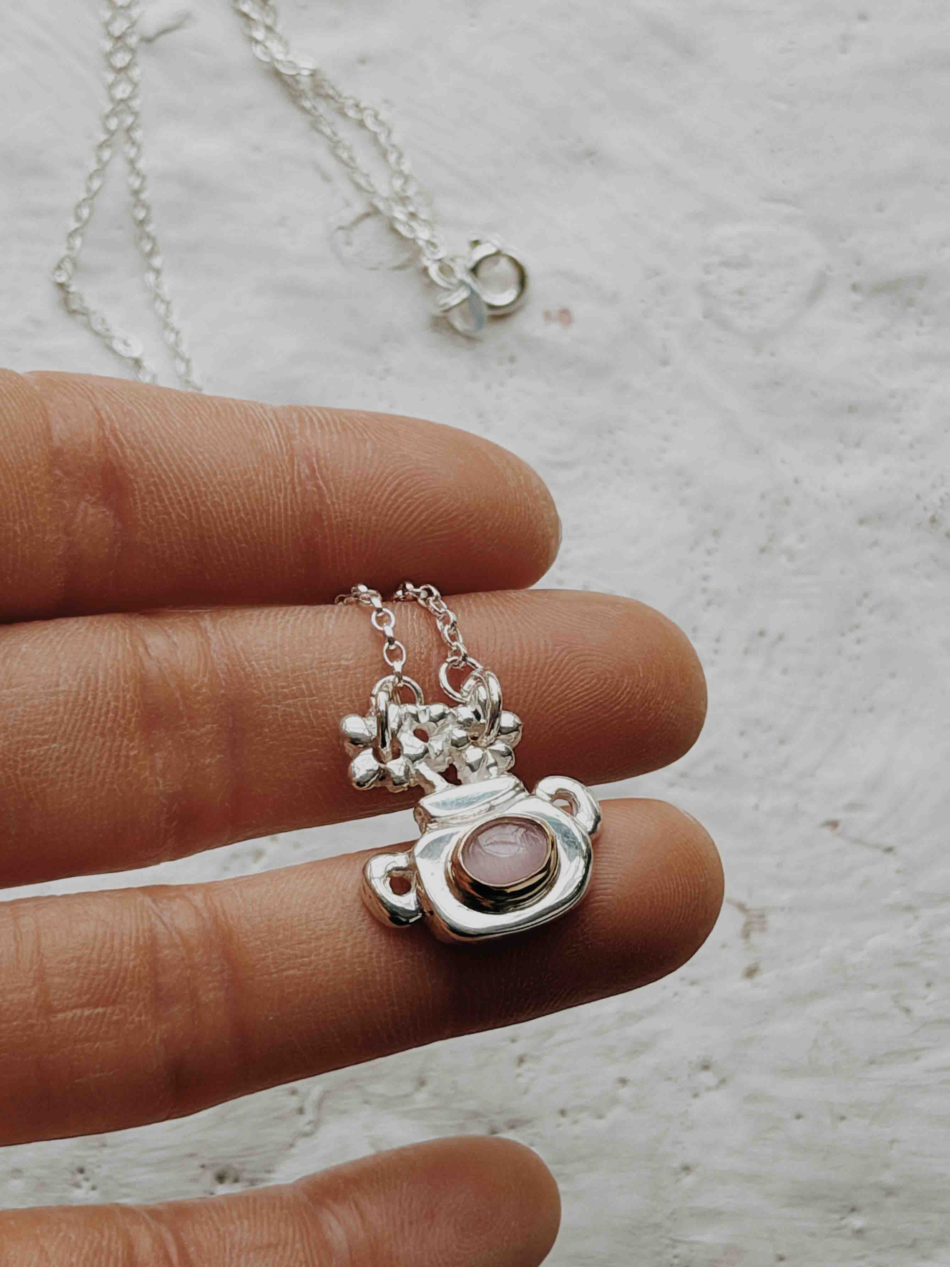 The Flower Pot Necklace with Pink Selenite