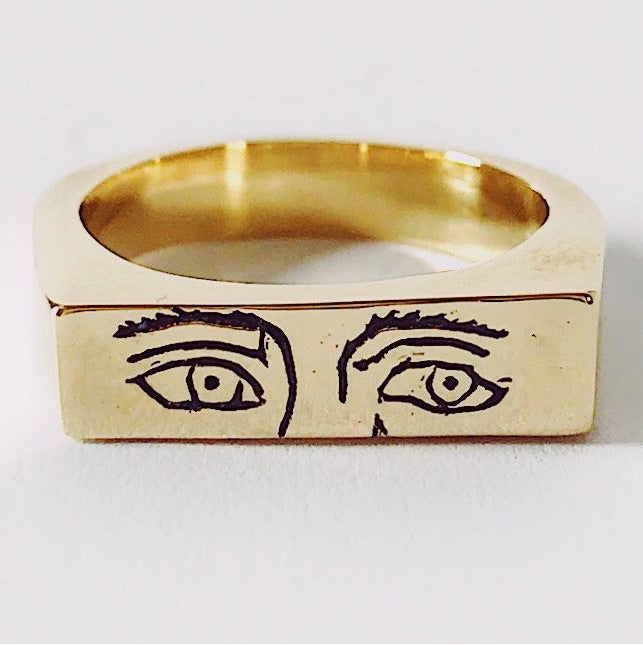 Our popular thin crying eyes ring in gold, perfect for stacking.
